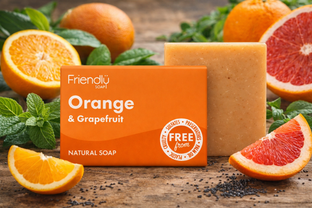Orange & Grapefruit Friendly natural soap which is bright, uplifting and refreshing.
