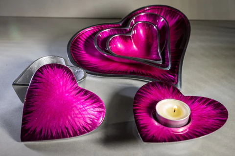 The Heart Trinket Boxes are stunning and very popular. They are a must buy and are perfect present, whether for a birthday, or anniversary. They are Fair Trade and hand made by Indian artisans working in cooperatives.  The products are made from recycled aluminium.